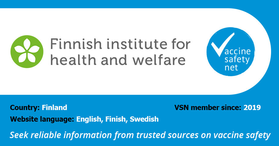 The vaccination part of the website of the National Institute for Health and Welfare is a member of the WHO-led project Vaccine Safety Net (VSN).