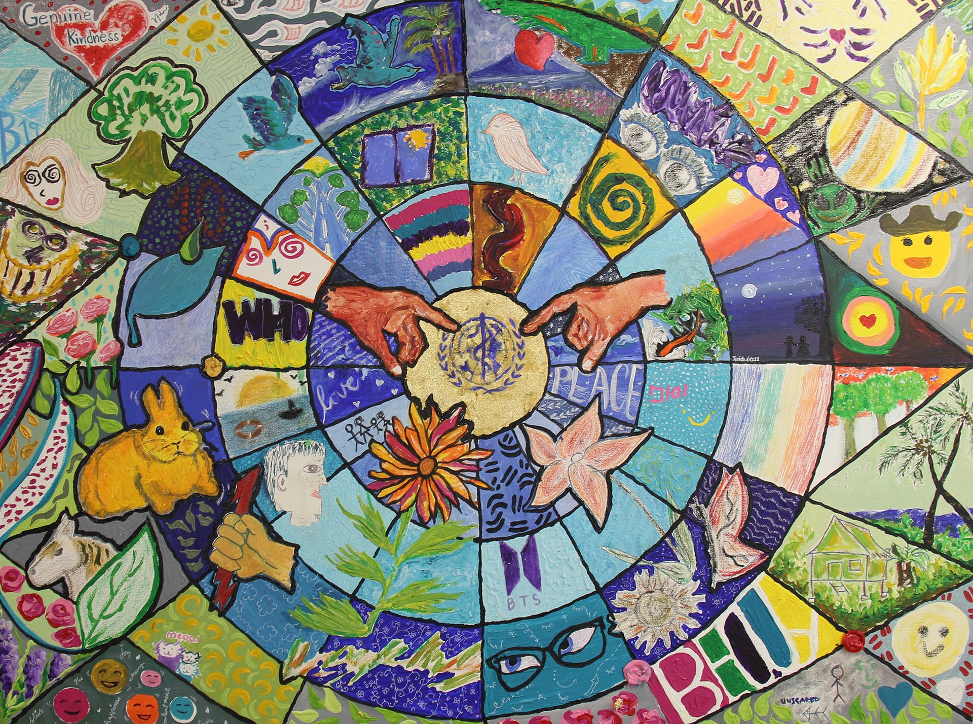 Two collaborative art pieces unveiled during the “See What You Feel and Love Through the Art of Mutual Collaboration” activity in commemoration of World Sight Day 2024 and World Mental Health Day 2024, involved four invited artists from the Western Pacific and over 50 members of the WHO Western Pacific Regional Office. The paintings, representing an eye and a heart, symbolize what people most love to see in their lives and the importance of promoting mental health at work. WHO's ongoing efforts to improve both eye health and mental health for all rely on an integrated approach, a theme central to the new WHO WPRO vision document, “Weaving Health for Families, Communities, and Societies in the Western Pacific Region”. The artworks reflect this shared focus on collaboration, originating from the Noncommunicable Diseases and Mental Health and Substance Use Units of the Division for Programmes for Disease Control.