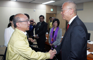 The Republic of Korea's Minister of Health and Welfare, Moon Hyungpyo, and Dr Keiji Fukuda, World Health Organization Assistant Director General, Health Security