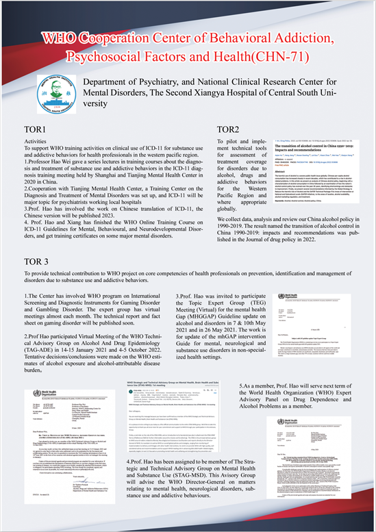 CHN-71: Central South University - WHO Collaborating Centre for Psychosocial Factors, Substance Abuse and Health